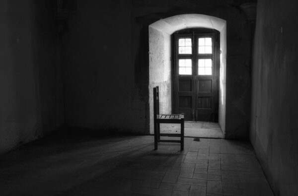 Em cima da mesinha, seus livros. Sobre a cadeira, a roupa usada do dia; espalhado sobre o banco, o resto. Um abajur e o vaso com uma flor oferecida. Sombras criadas no pátio, amareladamente iluminado, adentravam por duas grandes janelas sem venezianas. Esvaído de tempo, o pano da cortina marcado por cada hóspede que consigo…